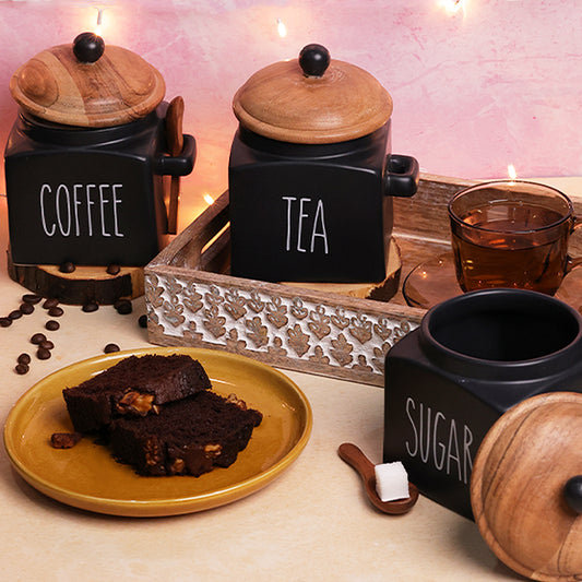 Mesmerising Matte Black Set Of 3 Tea, Coffee, Sugar Jar