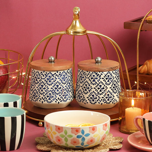 Blue Blocks Ceramic Storage Jar