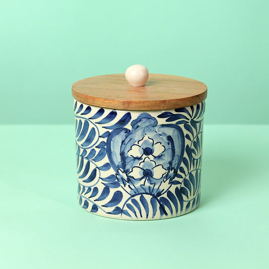 Blue Leafy Round Storage Jar