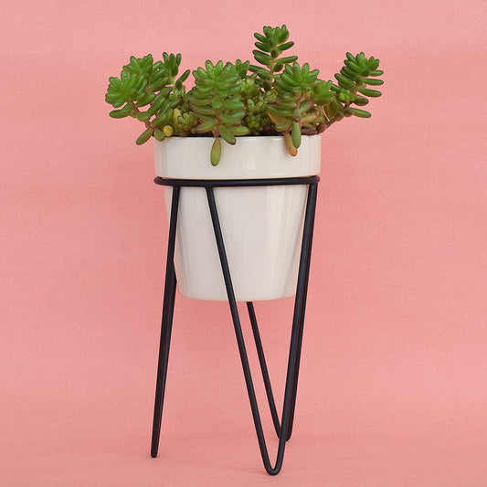 Earthy White Planter With Bold Black Stand
