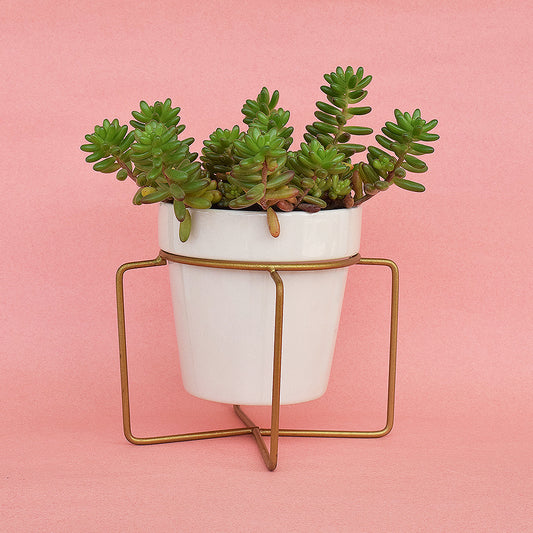 Earthy White Planter With Voguish Gold Stand