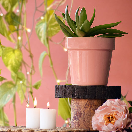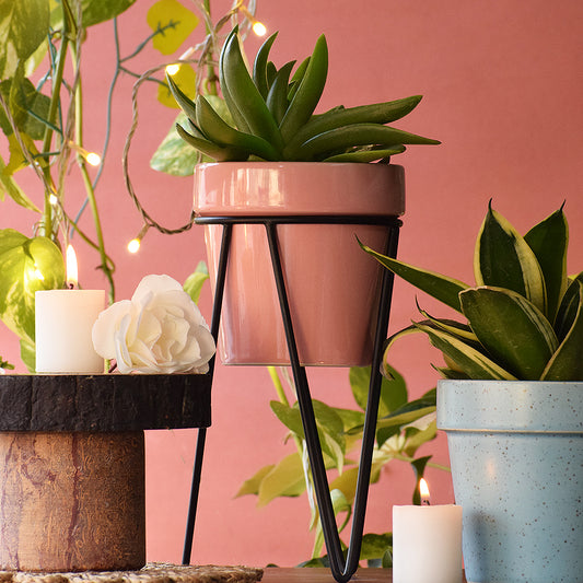 Pretty Peachy Pink Planter With Bold Black Stand