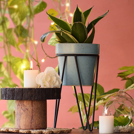 Cuban Blue Planter With Bold Black Stand