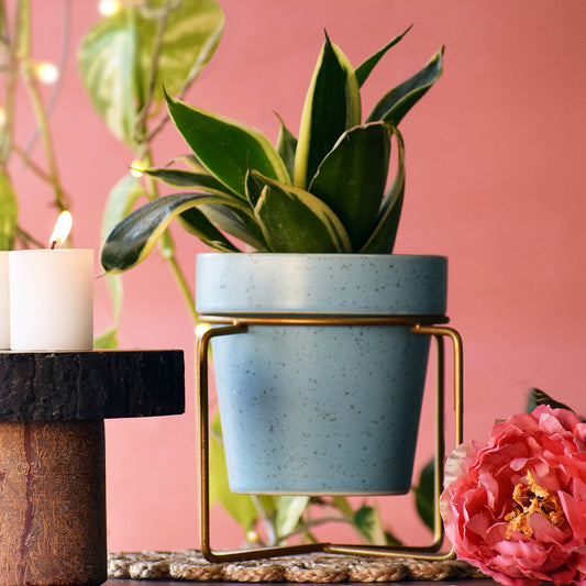 Cuban Blue Planter With Voguish Gold Stand