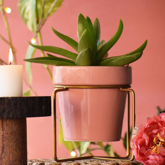 Pretty Peachy Pink Planter With Voguish Gold Stand