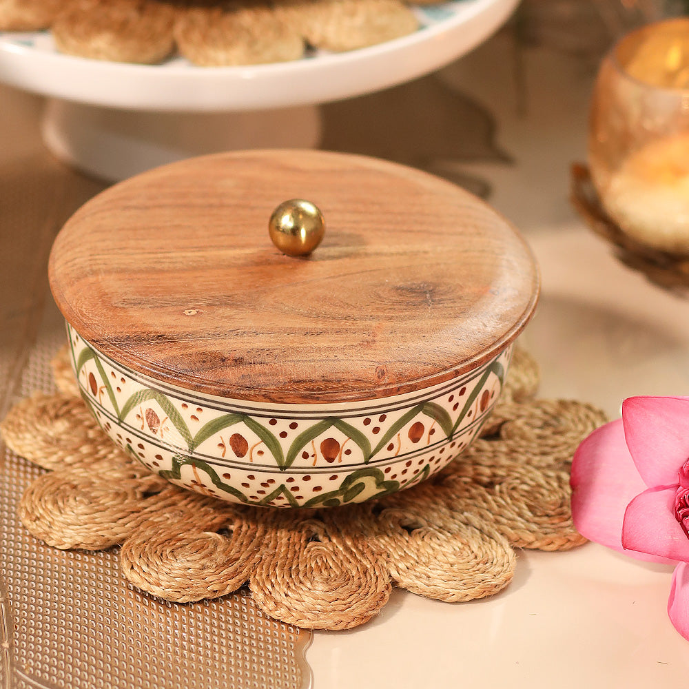- PACK CONTENT: 1 Ceramic Serving Bowl With Wooden Lid