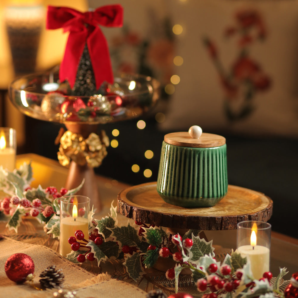 - FINISH: Ceramic jar with wooden airtight lid and metal knob